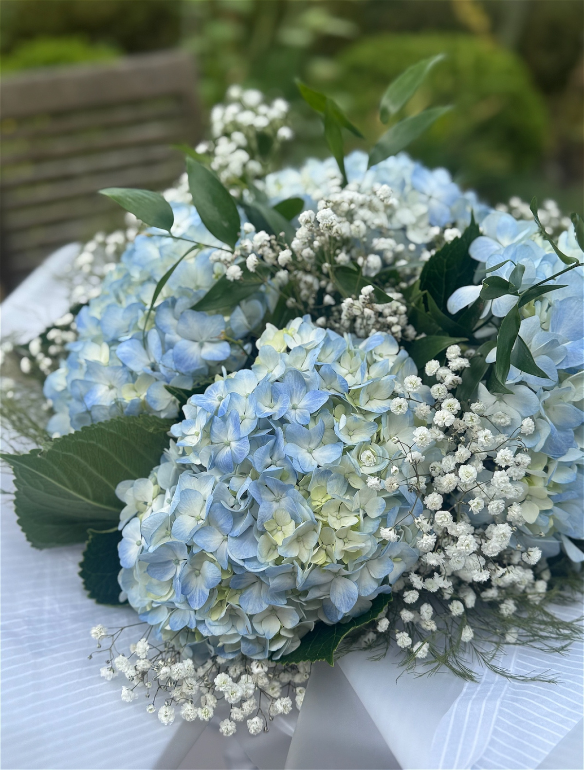 A soft, cloud-like bouquet featuring large, romantic blue hydrangeas paired with delicate clusters of white gypsophila (baby’s breath). This elegant arrangement blends texture and tone, perfect for expressing calm, love, and serenity. Ideal for sympathy, birthdays, or simply to brighten someone's day with timeless charm and gentle beauty.